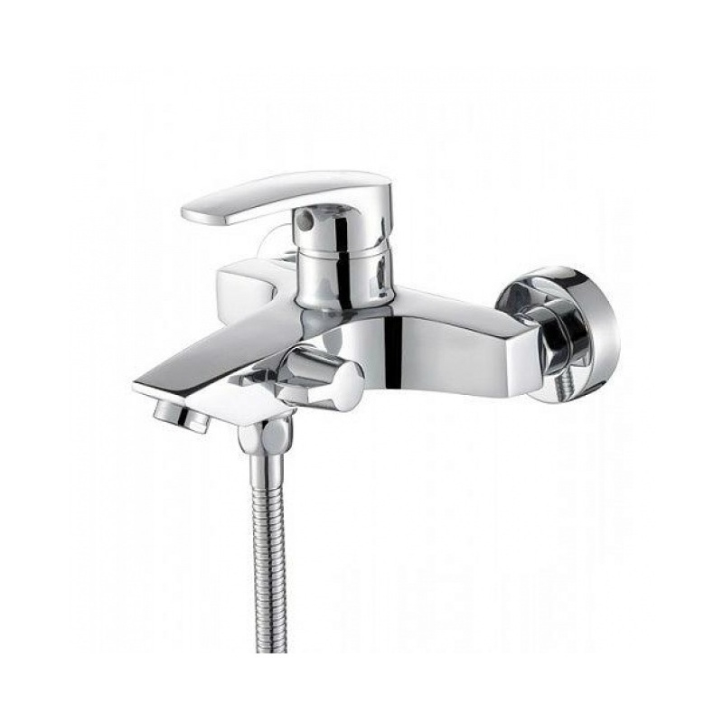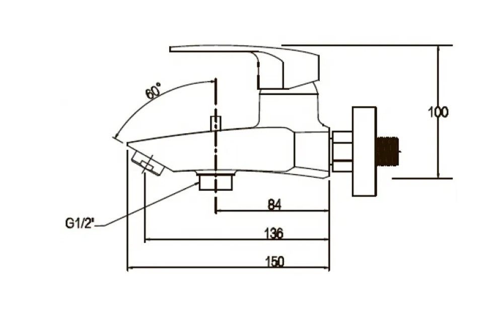 2) Смеситель для ванны и душа с фиксированным изливом и рычажным дивертором. Монтаж: на стену.