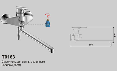 Смеситель для ванны OUTE T0163, имеет одну рукоять с целью контроля напора. Прибор выделяется комфортным управлением и стабильностью в процессе работы, поэтому пользуется сегодня популярностью у потребителей. Наличие аэратора в данном приборе помогает обеспечить равномерный поток воды , а также ее смягчение. Сетка внутри устройства отфильтровывает разнообразные примеси. Настенные приборы – классический вариант, который на данный момент времени чаще всего устанавливается в ванных комнатах. Помимо излива модели оснащаются отдельным выходом на душевой шланг. Современный прибор – совмещение классических конструкционных решений и одновременно с этим необычного и смелого дизайна. Подобного рода сантехника идеально подходит тем, кто постоянно стремится шагать в ногу со временем. Основной материал прибора - латунь, надежный материал, гарантирующий прекрасное нанесение хромированного покрытия. Модель обычной округлой формы. Излив у нижнего смесителя располагается ниже рычага контроля уровня подачи воды или вентилей. Именно к такому виду относится большая часть смесителей. Модель, обладающая поворотным изливом. Его возможно вращать, что значительно повышает эффективность использования данного прибора. У данных приборов переключение воды на излив или душевой шланг осуществляется при помощи поворота рычага, который выносится на переднюю панель прибора. В этом случае предполагается, что монтаж прибора происходит на два отверстия, имеющихся в раковине или умывальнике. В нашей действительности можно найти достаточно аналогичных образцов.
